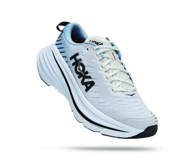 На цю модель варто звернути увагу вже тому, що в ній втілилися мрії багатьох прихильників тривалого бігу. У Hoka Bondi X є не тільки абсолютно плюшева амортизація, а й інтегрована в підошву карбонова пластина, яка в цьому разі конструктивно заряджена не на підвищення швидкісних показників, а на реальну економію ваших сил.