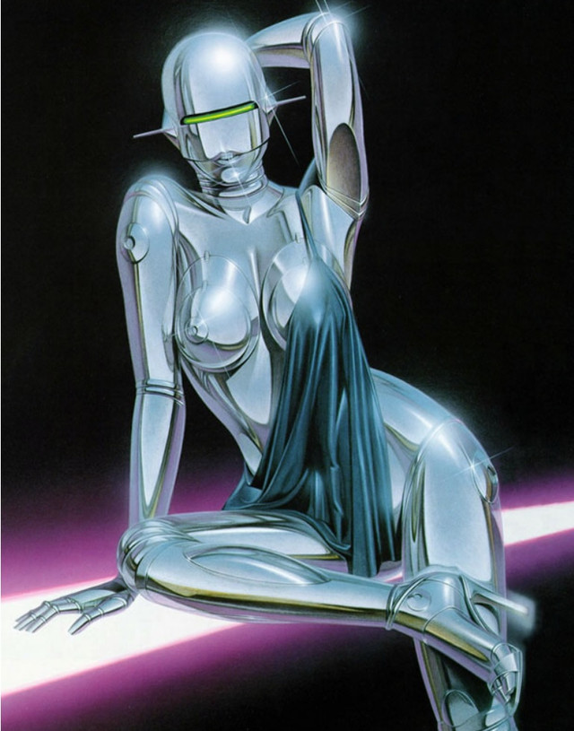 Хаджиме Сораяма - японський художник-ілюстратор, відомий своєю серією робіт "Sexy Robots". Уперше опубліковані в 1983 році, жіночоподібні гиноиды Сораямы принесли йому світову славу, поставивши новий вектор розвитку жанру кіберпанк. Художник змішував техніки малювання олівцями і фарбами, домагаючись гиперреалистичного зображення хромованого тіла.